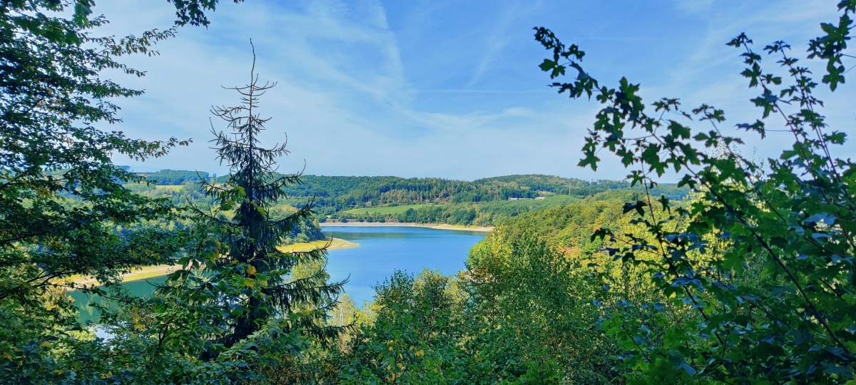 Leicht welliger Radweg entlang des Stausees