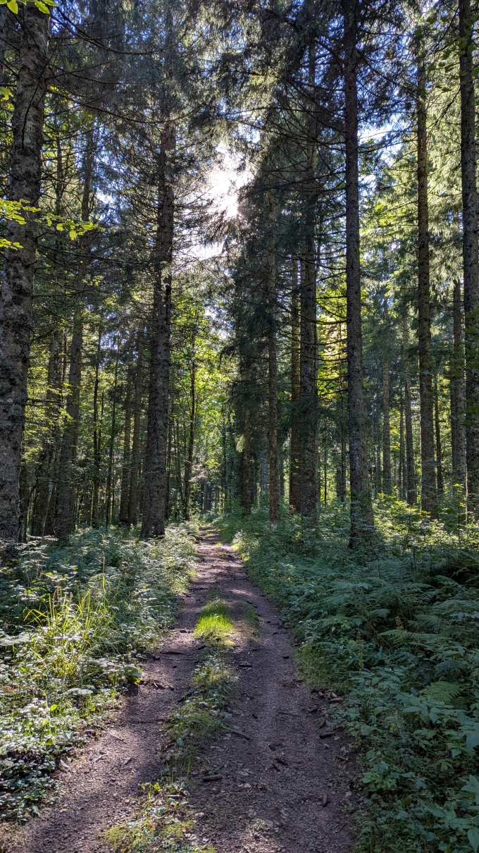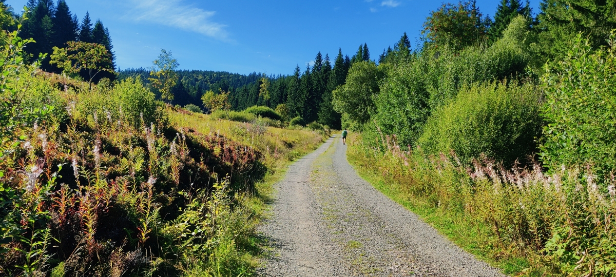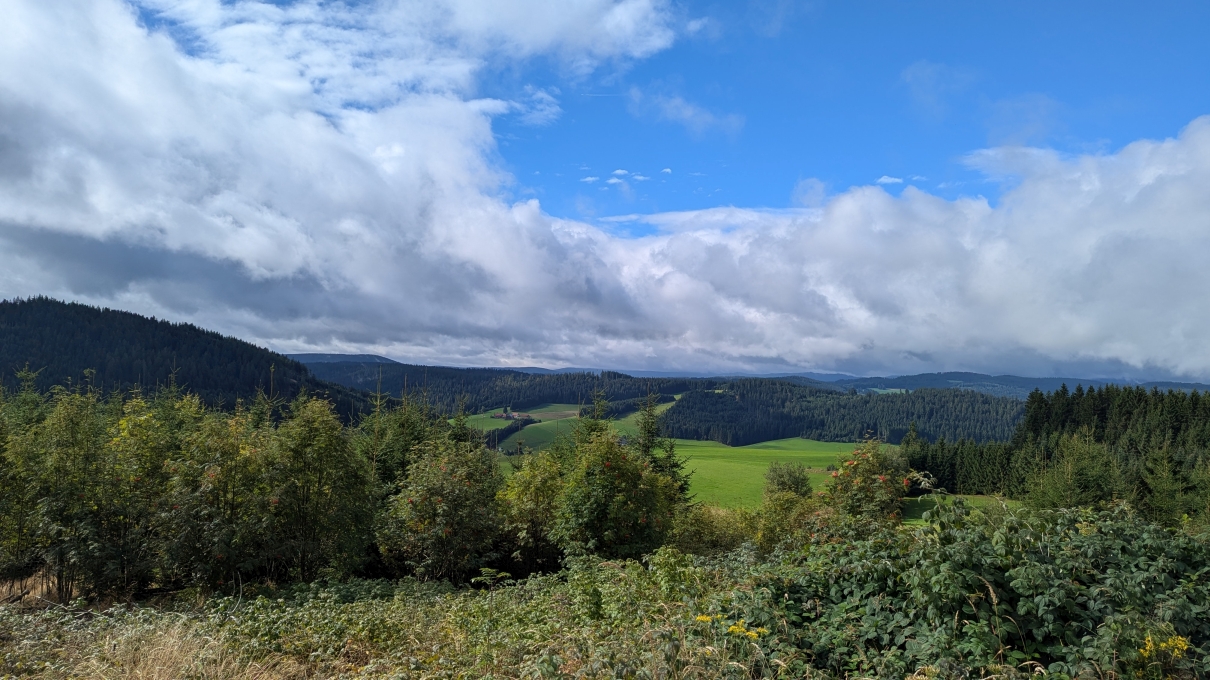 Hier gibt es sehr viel Wald und manchmal auch weite Ausblicke