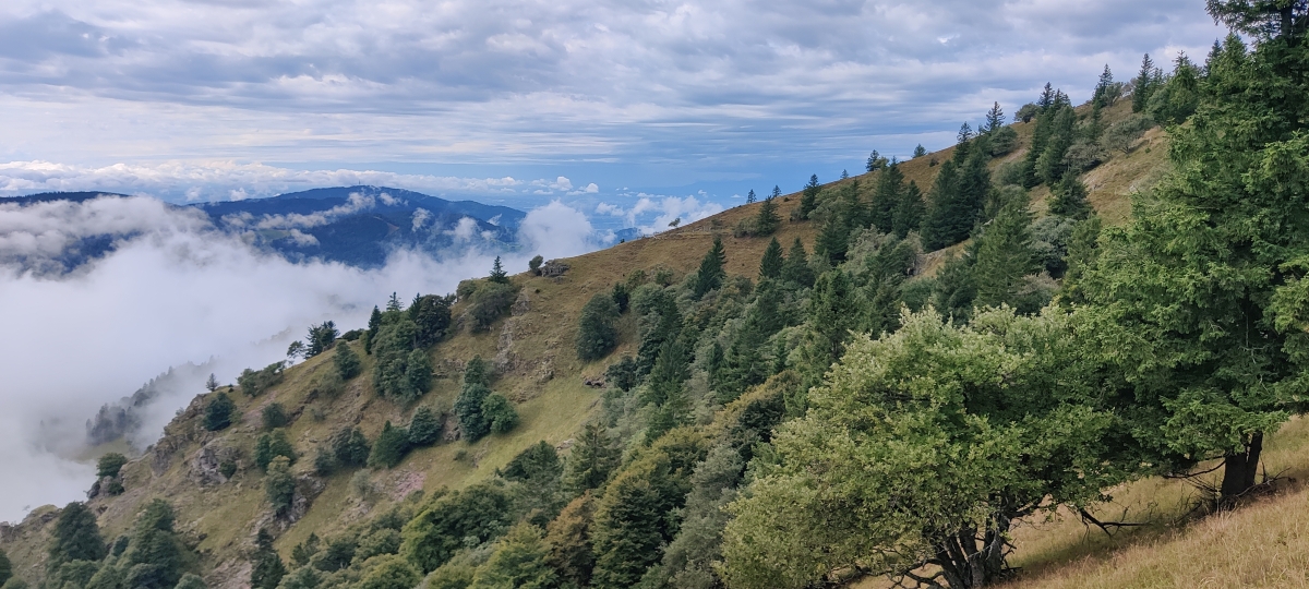 Wolken am Berghang, wenig spaeter kommt das grosse Gewitter