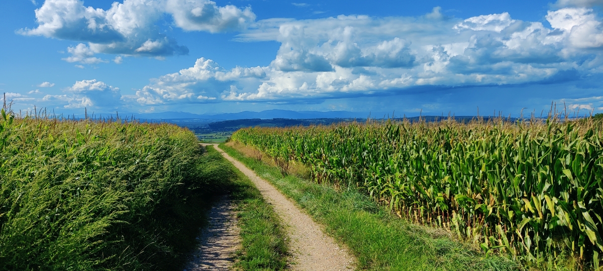 Es gibt auch laengere Passagen auf Wirtschaftswegen