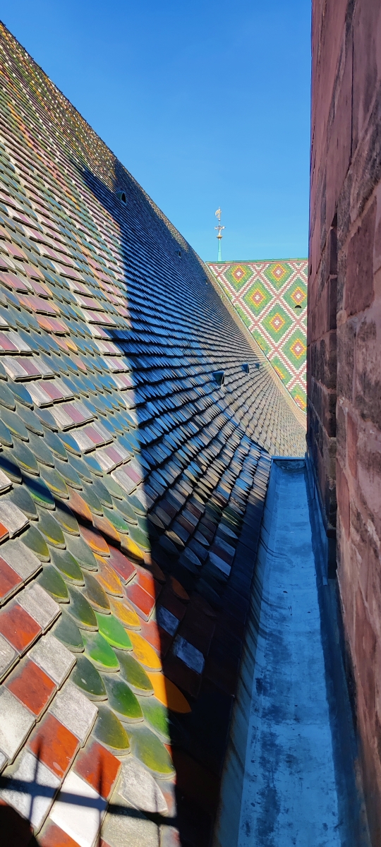 Wir besteigen das Muenster: Mosaik auf dem Dach