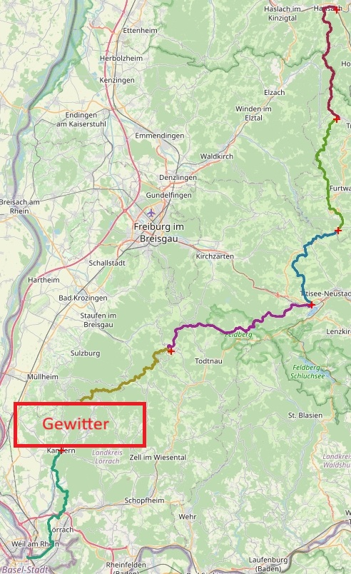 Der komplette Westweg laeuft von Pforzheim bis Basel. Wir sind kurz vor der zweiten Haelfte eingestiegen.